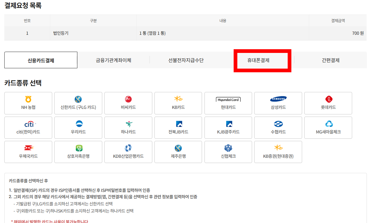휴대폰 결제가 가장 간편하고 빨리 진행된다