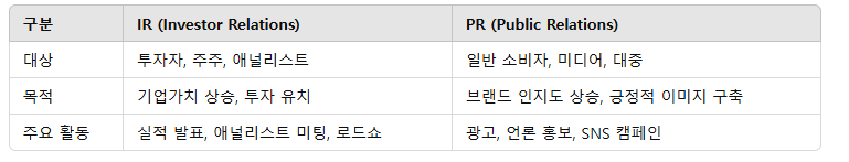 IR과 PR(홍보)은 종종 혼용되지만, 그 목적과 대상이 다릅니다.